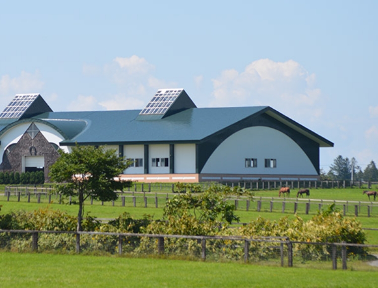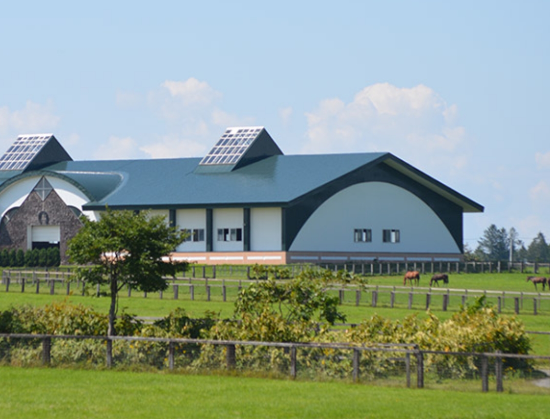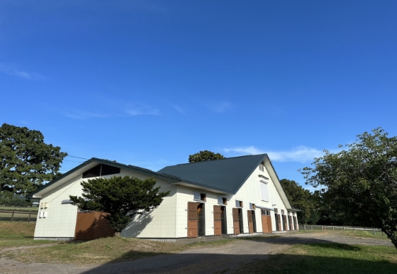 - 洞爺本場の面積は約70ヘクタール。広大な敷地内にて50頭の繁殖牝馬とその産駒たちを管理しています。厩舎は4棟あり、放牧地に繋がっているシェルターが6棟あります。