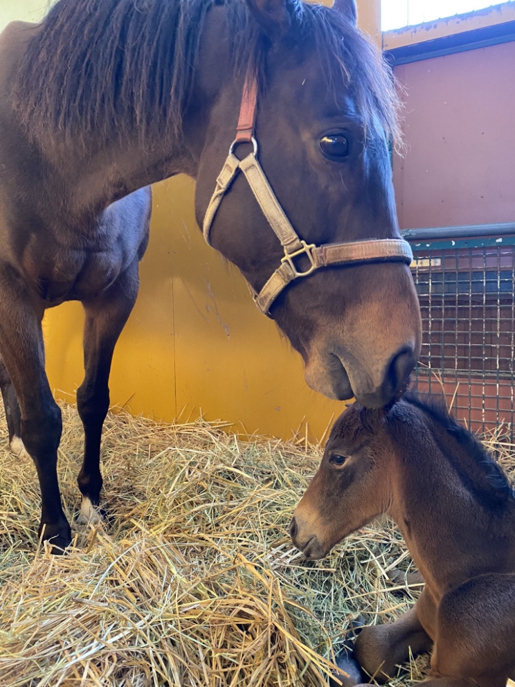 レイクヴィラファームが初めてヨーロッパに買い付けに行った時に購入した1頭です。祖母のレイクトーヤ(洞爺湖)とか、叔母でサンタラリ賞を勝ったソーベツ(壮瞥町、洞爺湖町の隣町)とか、このあたりの馬名はダーレーの人が洞爺湖周辺の地図を見て、適当に付けたと思うんです。でも、ノーザンファームでアビラ(安平町)の仔が走っていましたし、うちもレイクトーヤの血統を買いたいな、と思っていたんですよ。