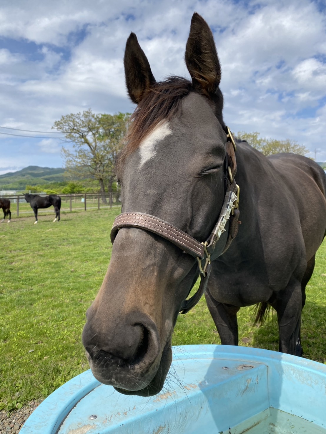 自己主張のない馬です。あえて不安を挙げれば、何でも我慢するのでストレスを発散できていないように見えることでしょうか。理想を言えば、腹袋ももう少し膨らんできてほしいところです。妊娠後期を迎えると、ある程度は人を頼ってくれた方がスムーズに出産できる傾向にあるので、スタッフで相談しながらうまくサポートしてあげたいですね。