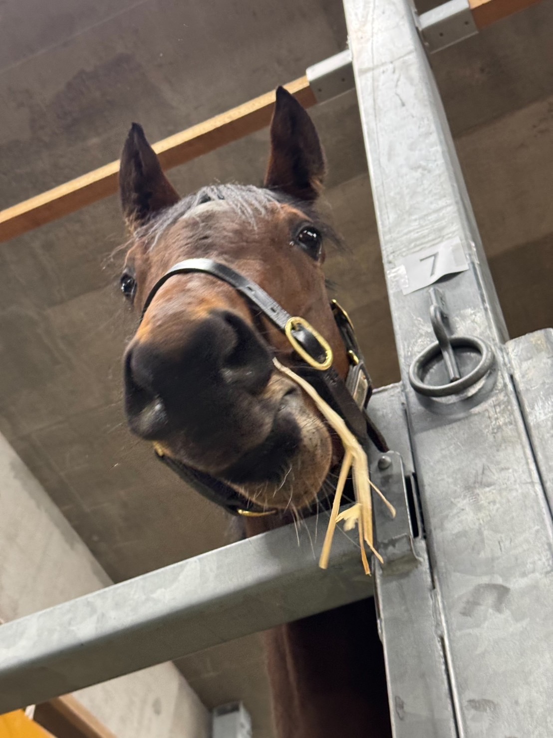 レイクの繁殖では唯一の3歳馬。本来なら競走馬としてバリバリ走っている年齢ですし、心身ともに若くて〝女子高生!〟といった感じです。性格は喜怒哀楽がハッキリしていますね。体はレイクに来てから70kgぐらい増えて、繁殖らしい体型になってきましたが、とはいえまだまだ成長途上。完成するのは3年ぐらい先じゃないでしょうか。