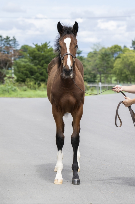 現時点では腰高ですが、これから成長するに従ってバランスも良くなることは確実です。父の産駒らしい中距離の本格派か、それとも母譲りの快足馬か─。