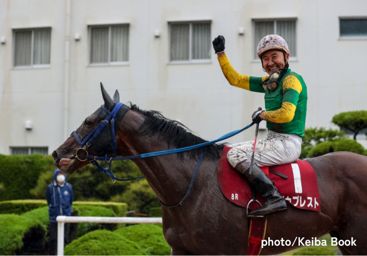 それから20年以上が経ち、レイクヴィラファームに初の障害重賞タイトルを届けたのがスズカプレストでした。父がダイワメジャー、母の全兄が98年天皇賞・春など重賞7勝を挙げた〝名ステイヤー〟メジロブライトという血統馬。平地では未勝利に終わりましたが、ジャンパーとして素質が開花しました。4歳秋に待望の初勝利を挙げると、オープンでも堅実に走り、5歳秋に清秋ジャンプSを制覇。さらに8歳春の京都ハイジャンプで念願の重賞タイトルを獲得しました。