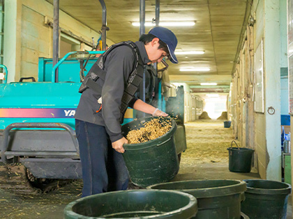 飼い葉の注文をした時に数量を間違ってしまって、皆にものすごく迷惑をかけてしまった事がありました。先輩に「競走馬はアスリートなのだから、アスリートを育てているという意識で食べ物やケアに気を配らないと駄目だぞ」と言われたことを身に染みて感じました。